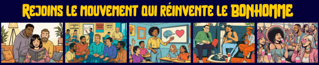 Adhérer à l’association Evingel, c’est soutenir le projet Le Manuel du Bonhomme et participer à une aventure culturelle, éducative et fun qui redéfinit la Masculinité avec Bienveillance sans chichi.