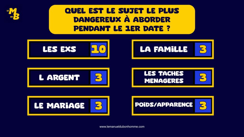 2 participant-es s’affrontent autour de questions sondées auprès d’un panel.